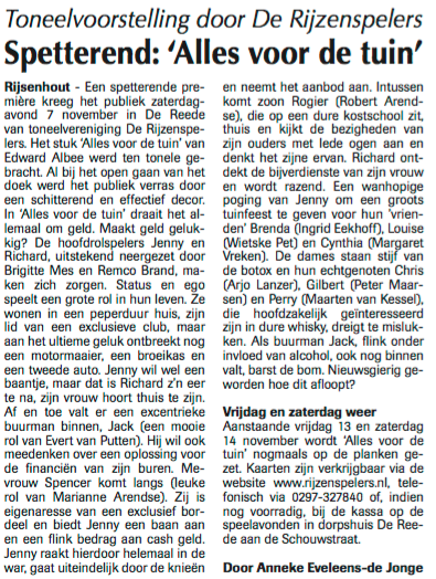 Richard en Jenny leven boven hun stand. Het groene gras bij de buren, blijkt een belangrijke drijfveer te zijn. Om gelukkig te zijn moet je immers in een duur huis wonen met een prachtige tuin en lid zijn van een dure club.