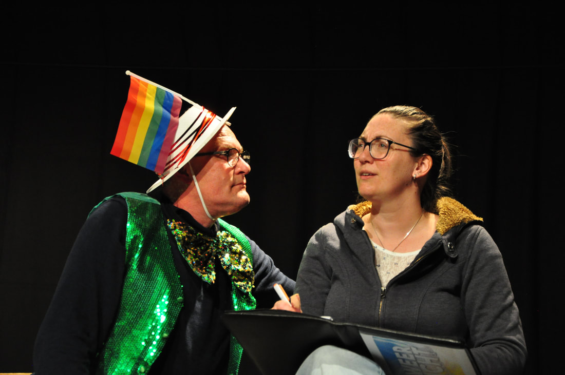 In de voorstelling, onder regie van Robert Arendse, draait het om Bram, een weerman die weinig plezier beleefd aan zijn job, maar door onvoorziene omstandigheden ineens weinig anders meer heeft om voor te leven dan een kneuterige feestdag in een (naar eigen zeggen) “klein kutdorpje”. Remco Brandt speelt de hoofdrol van Bram en dat doet hij op weergaloze wijze. Bijna de hele voorstelling staat hij op het toneel en dit doet hij vol energie. Hij valt nooit uit zijn rol als cynische weerman en weet de enorme hoeveelheid tekst die hij heeft met gemak op te lepelen. Een waar genot om naar te kijken. Zijn tegenspeler is Tina, de persoonlijk assistent van Bram die het nogal moeilijk heeft met haar onaardige baas. Mariska van Leeuwen zet een praktische, nuchtere Tina neer, waarmee het onmogelijk is om geen medelijden te krijgen als ze weer eens een vervelende opmerking van Bram te verduren krijgt. Mooi samenspel tussen de twee hoofdrollen!