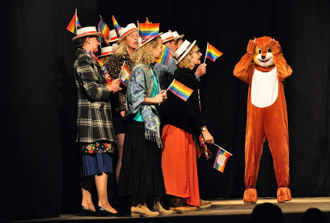 Tijdens de grote groepsscenes (er doen in totaal 17 spelers mee) ontstaat er vaak een kleurrijk plaatje, bijvoorbeeld tijdens de ceremonie waar Bram verslag van moet doen. Dat het toneel dan soms wat vol is, is goed opgelost door het licht en geluid dat zoals altijd prima in orde is.