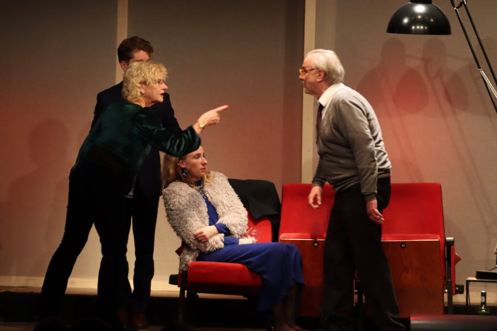 Met de chemie tussen Sylvia Broos (spelend sinds 1974 in 41 stukken) als Martha en Evert van Putten (spelend sinds 1989 in 48 stukken) als George zit het wel goed. Zij bitchy met de lach aan haar kont, vertederend, manipulatief, hongerend naar aandacht en hij als een geloofwaardige tegenpool, sullig, getergd, getraumatiseerd, maar ondanks de drank volledig scherp voor de finale. Nick en Honey worden gespeeld door Renzo Koolhaas en Denise Lanser, spelend sinds 2022 in twee stukken. Een fris en fruitig koppel, althans dat denk je. Zij met haar engelachtige krullen en goed gespeelde vrolijkheid, een symbool van onschuld. Hij met zijn good looks, scherp gesneden pak en keurig uitgesproken tekst, het toonbeeld van correctheid.