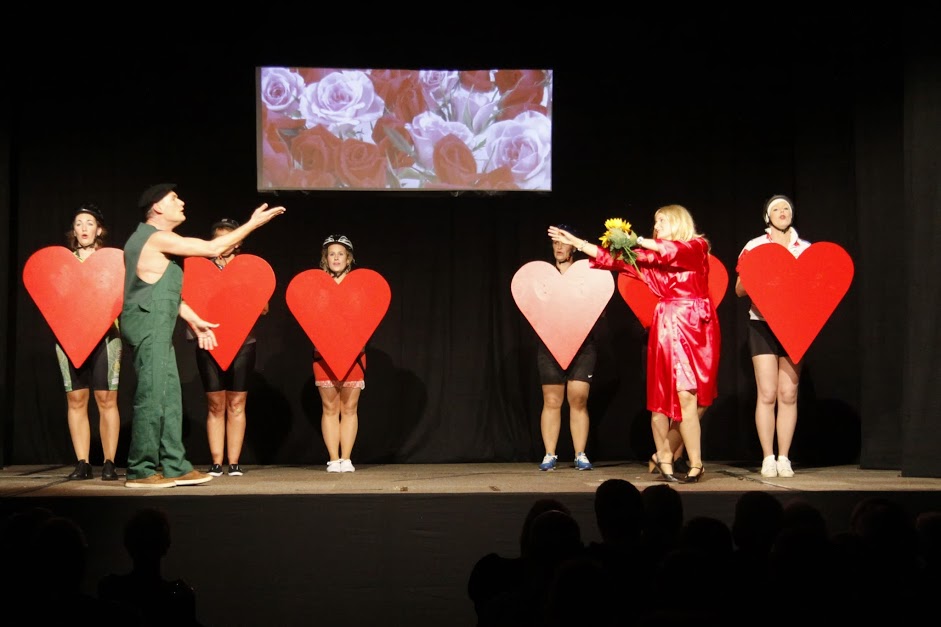 Fietsend en zingend brengen de zes eigenzinnige dames hun avonturen op het toneel.